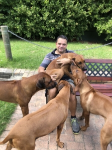 Robert saw his first Rhodesian Ridgeback in 1992 while on vacation in South Africa on the back of a bakkie in Camps Bay and you could say it was love at first sight. His goal was to one day have a Ridgeback himself as a loyal companion. Until then, his family had always had Drathaar, with whom he slept in the dog basket even as a baby. In 2012, Robert emigrated to Cape Town and shortly afterwards the first Rhodesian Ridgback stud dog Aghilas moved in. 20 years later, his wish had finally come true. Of course, Aghilas also needed a playmate and so a few months later Dafina joined him.