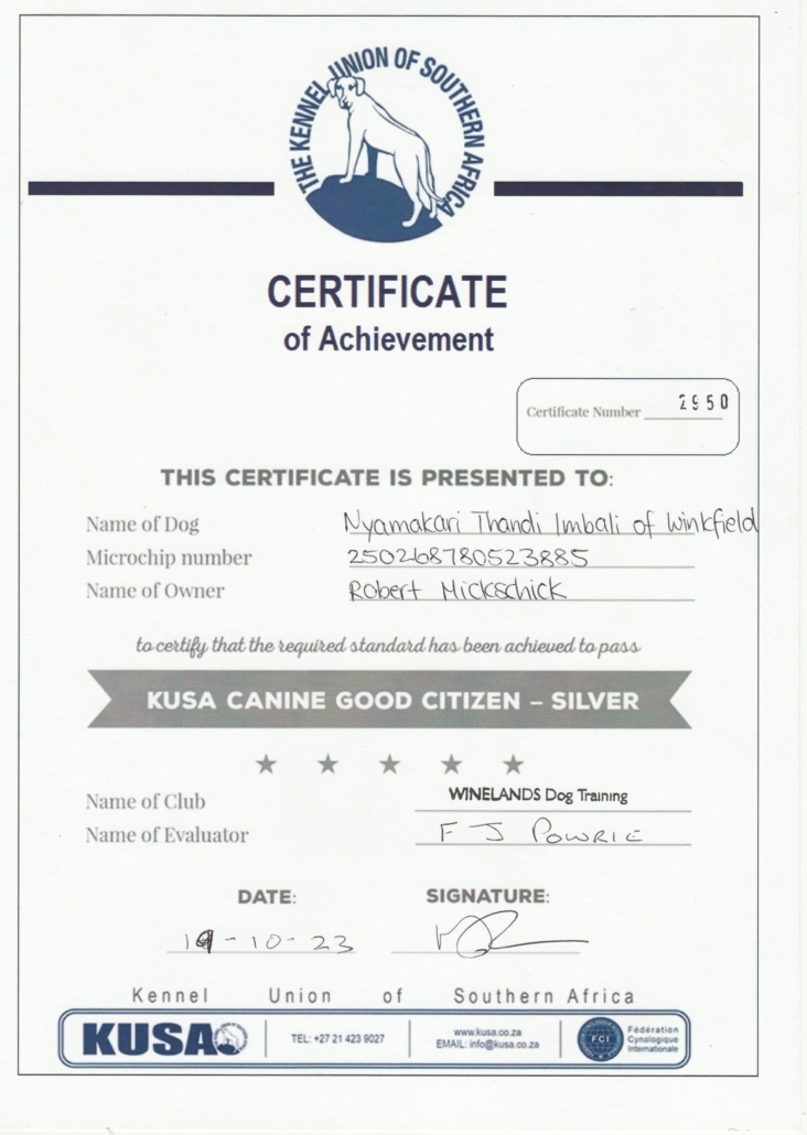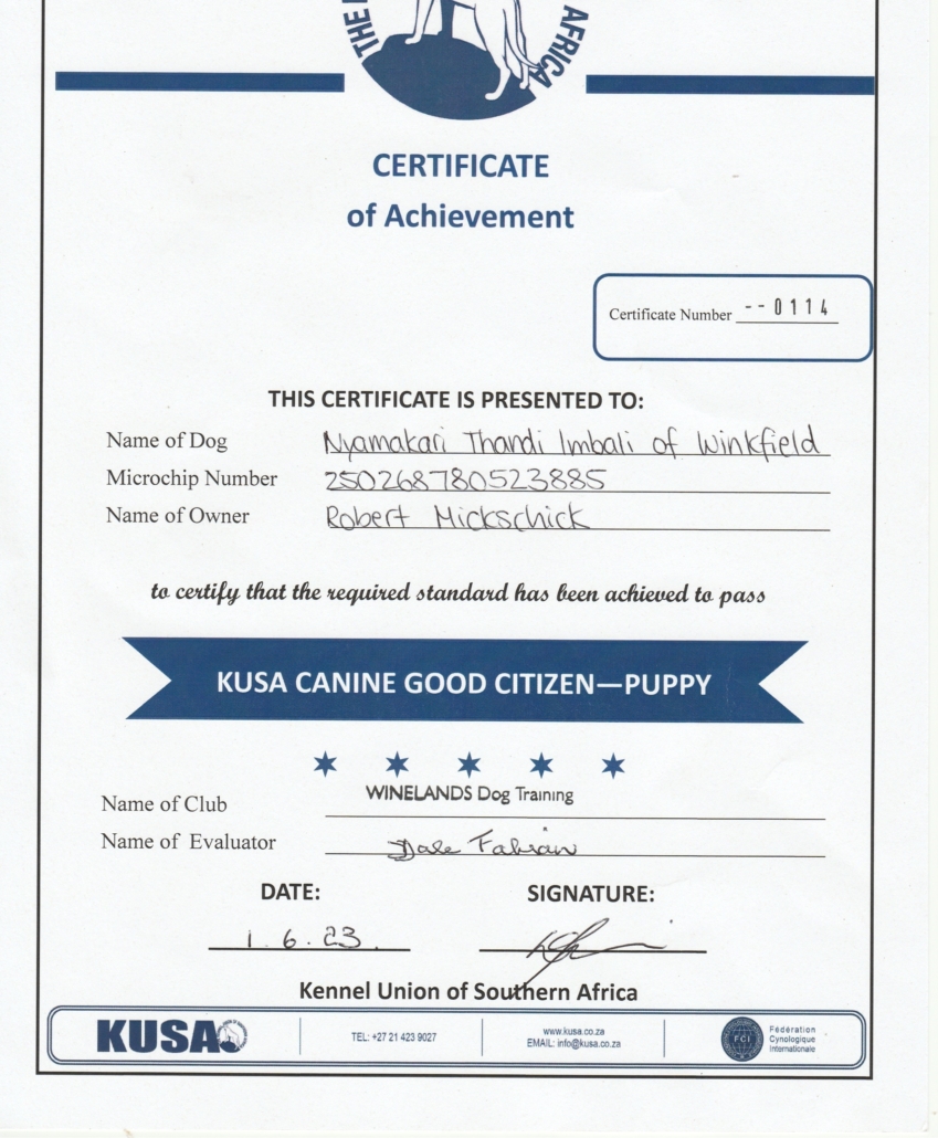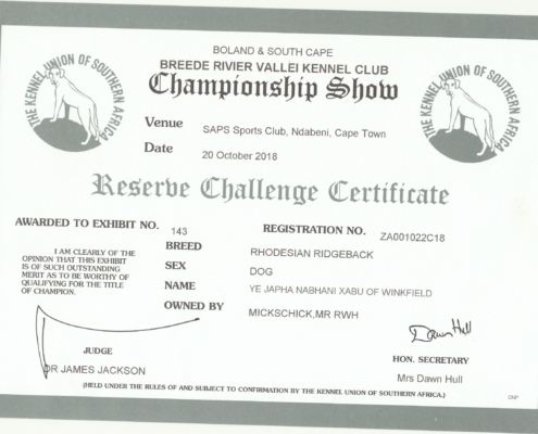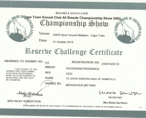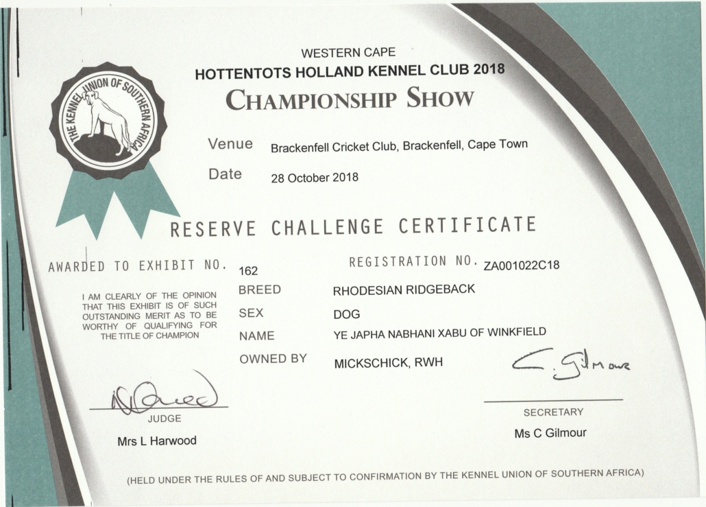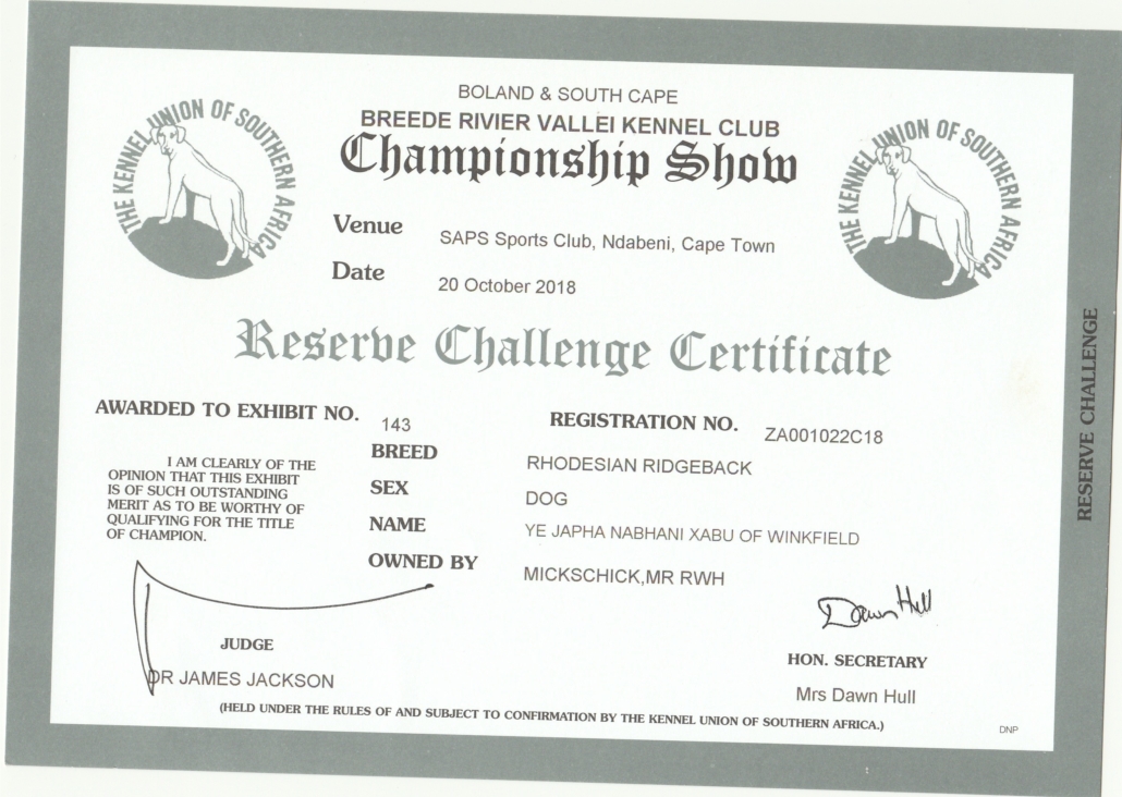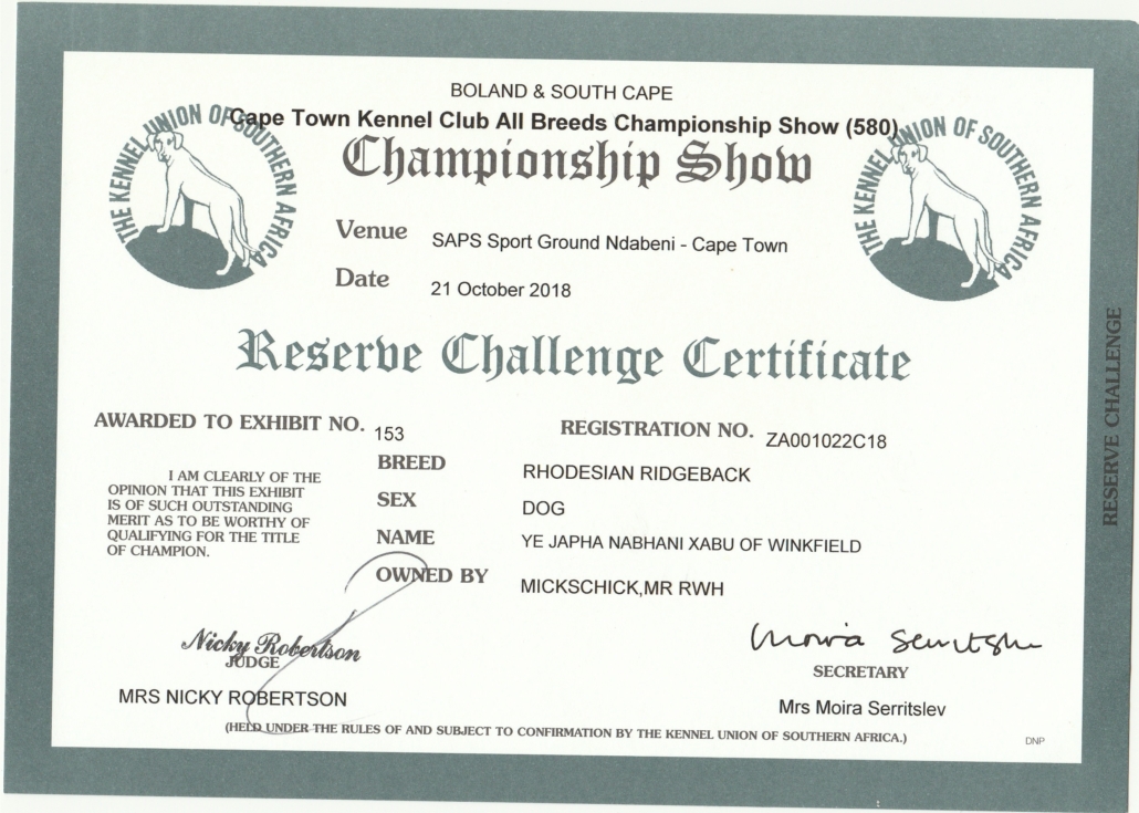 Sie sind hier: Startseite1 / Home of Winkfield Ridgebacks2 / Our Dogs3 / Achievements & Awards