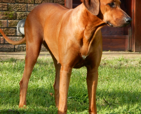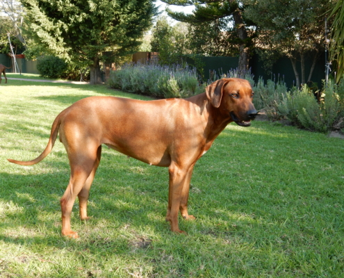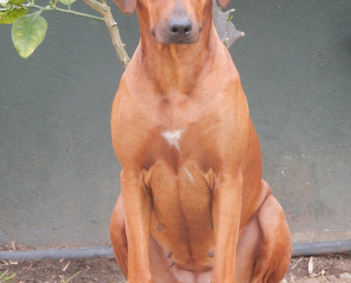 KUSA Reg No: ZA001516B15 Date of Birth: 17-09-2014 Sex: bitch Sire: Lionsriver Aghilas Aaron of Winkfield KUSA: ZA012542B12 Dam: Glenaholm Joyful Hunter of Winkfield KUSA: ZA022656B13 Height: 67cm Color: red wheaten HD: A2-A2 D-Locus: DD Breeder: Mr. Robert Mickschick